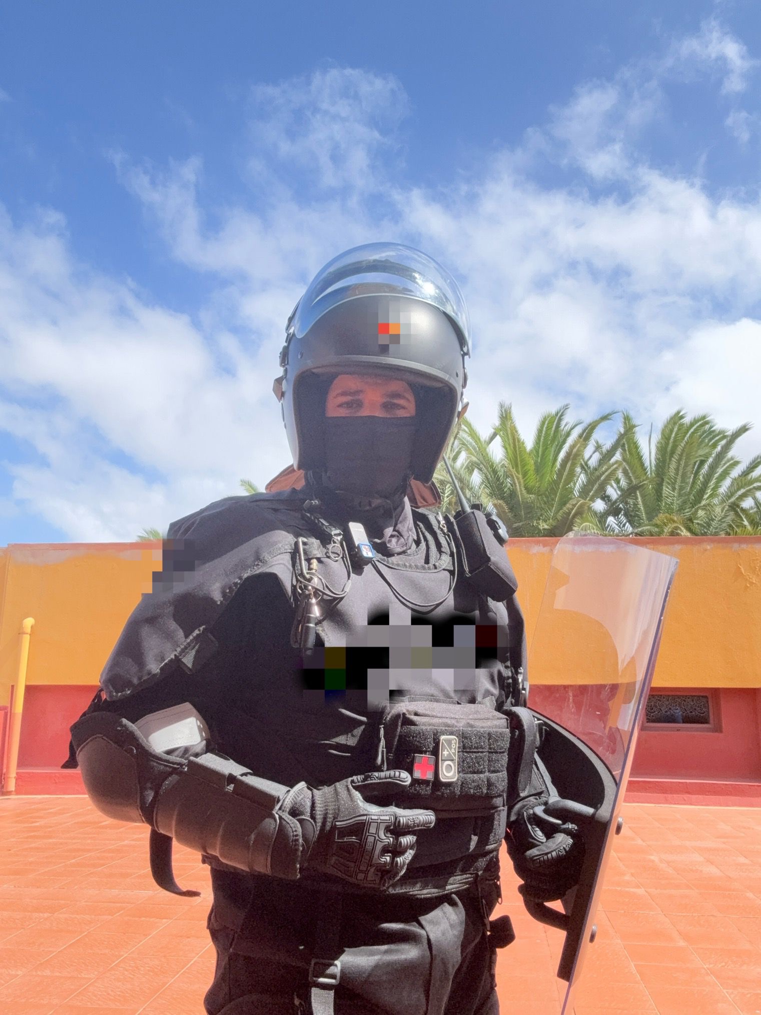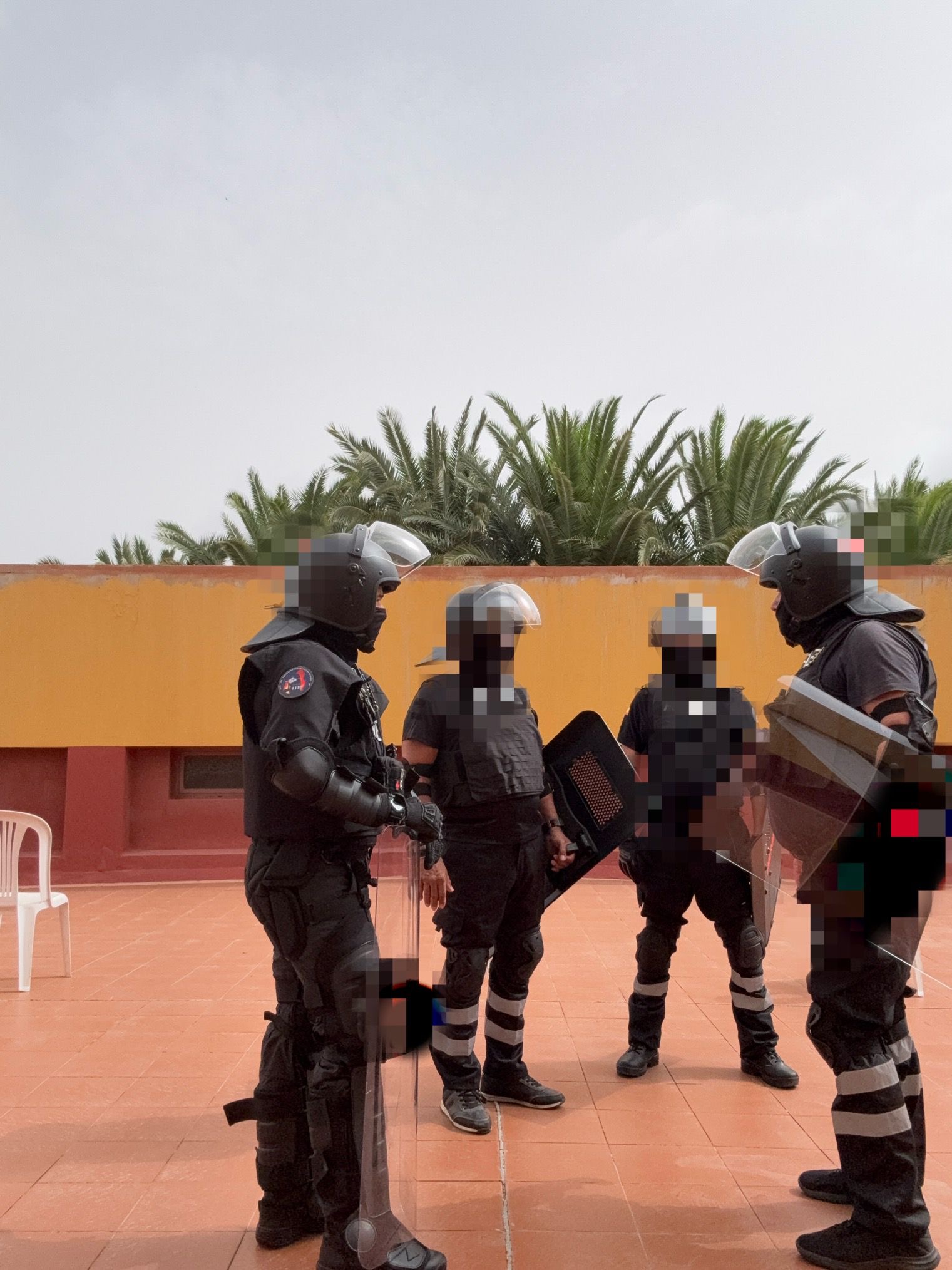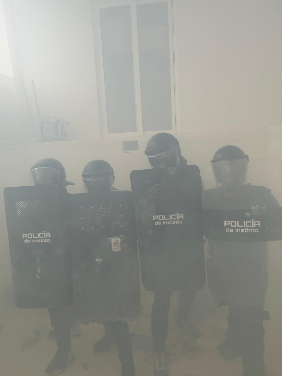 El segundo bloque introduce el uso del torniquete y el control en situaciones críticas, mientras que en el tercer bloque —enfocado a antidisturbios— los participantes se equipan completamente y se enfrentan a escenarios de caos real, vestidos con material antidisturbios.