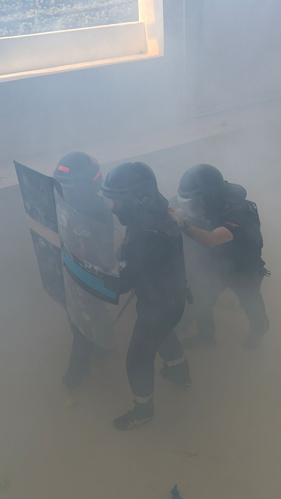 Uno de los espacios más exigentes es el denominado Hell Room, donde se simulan entradas operativas: derribo de puertas con ariete y detenciones in situ bajo presión máxima.